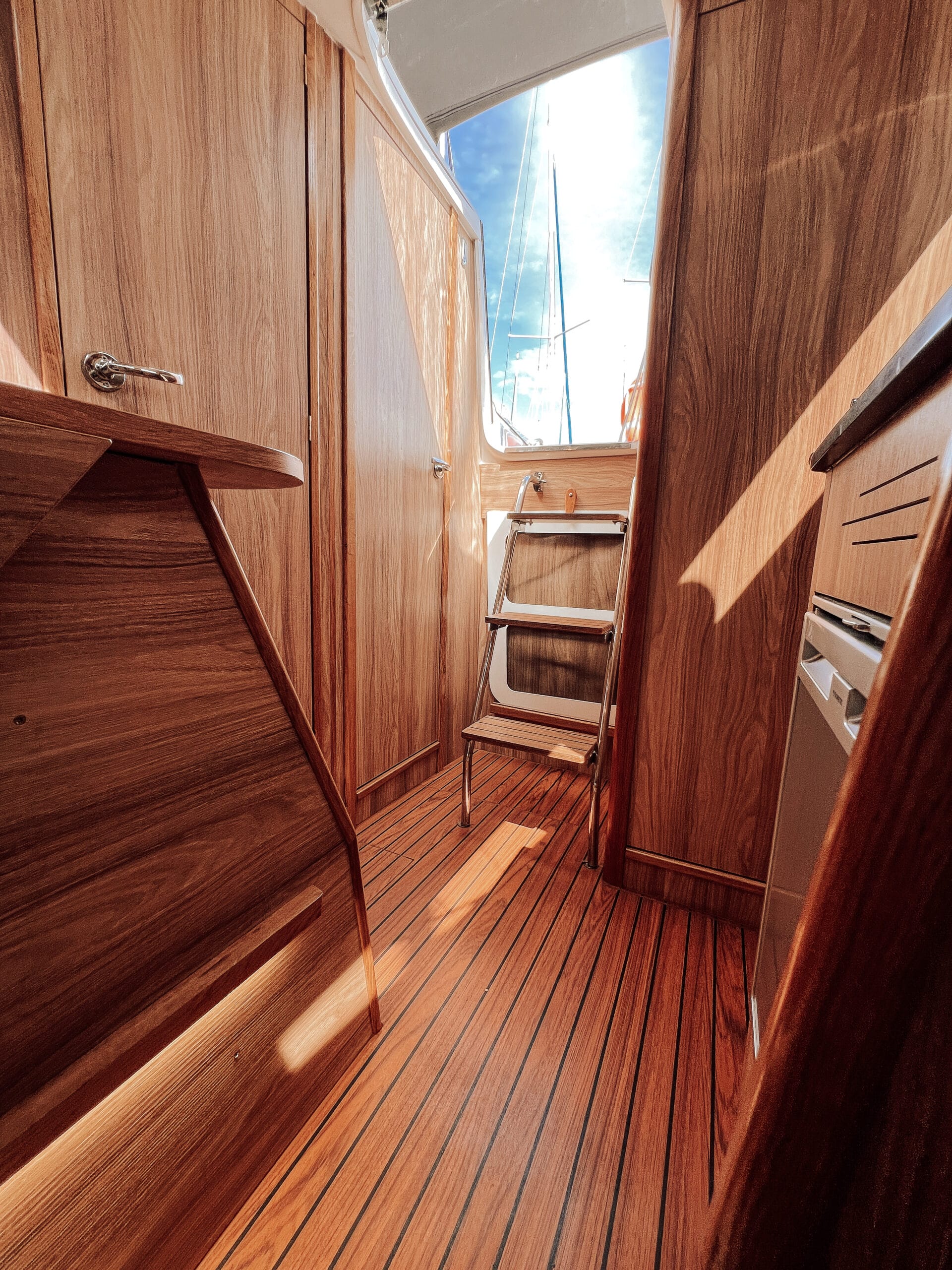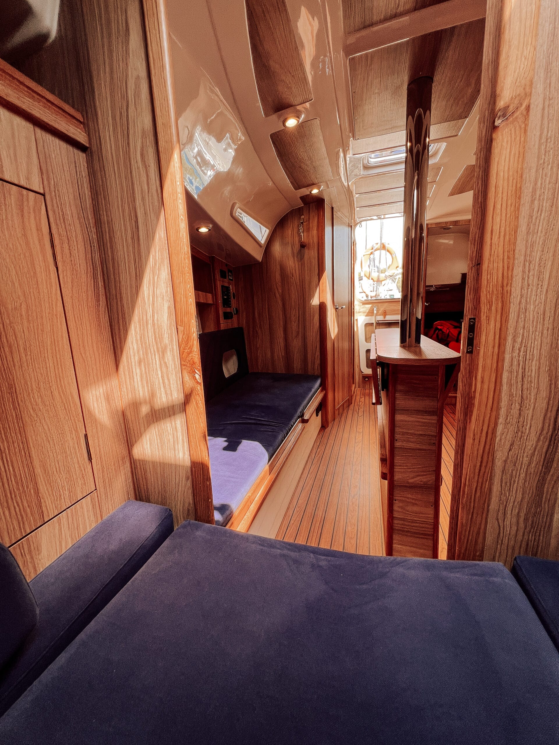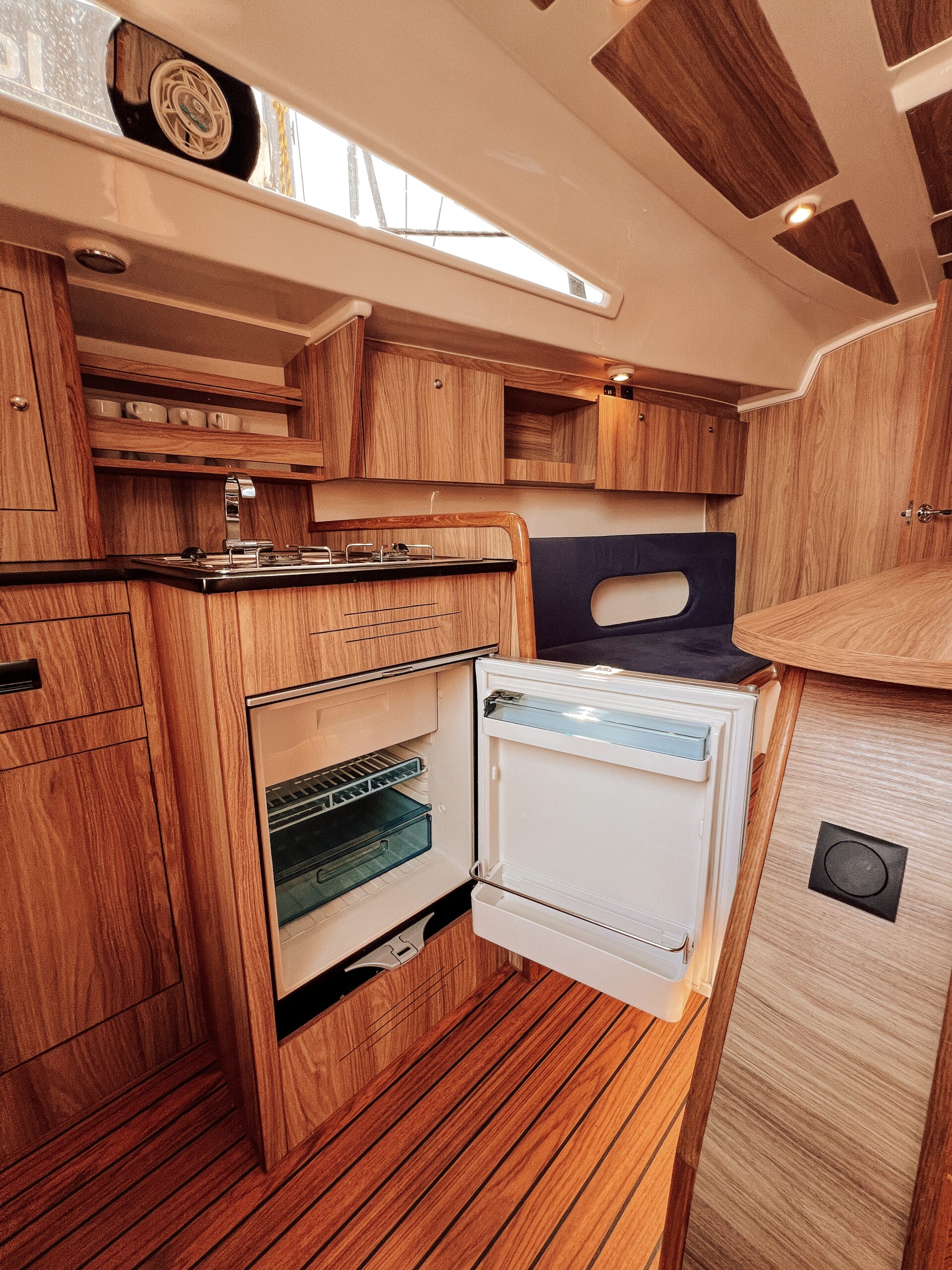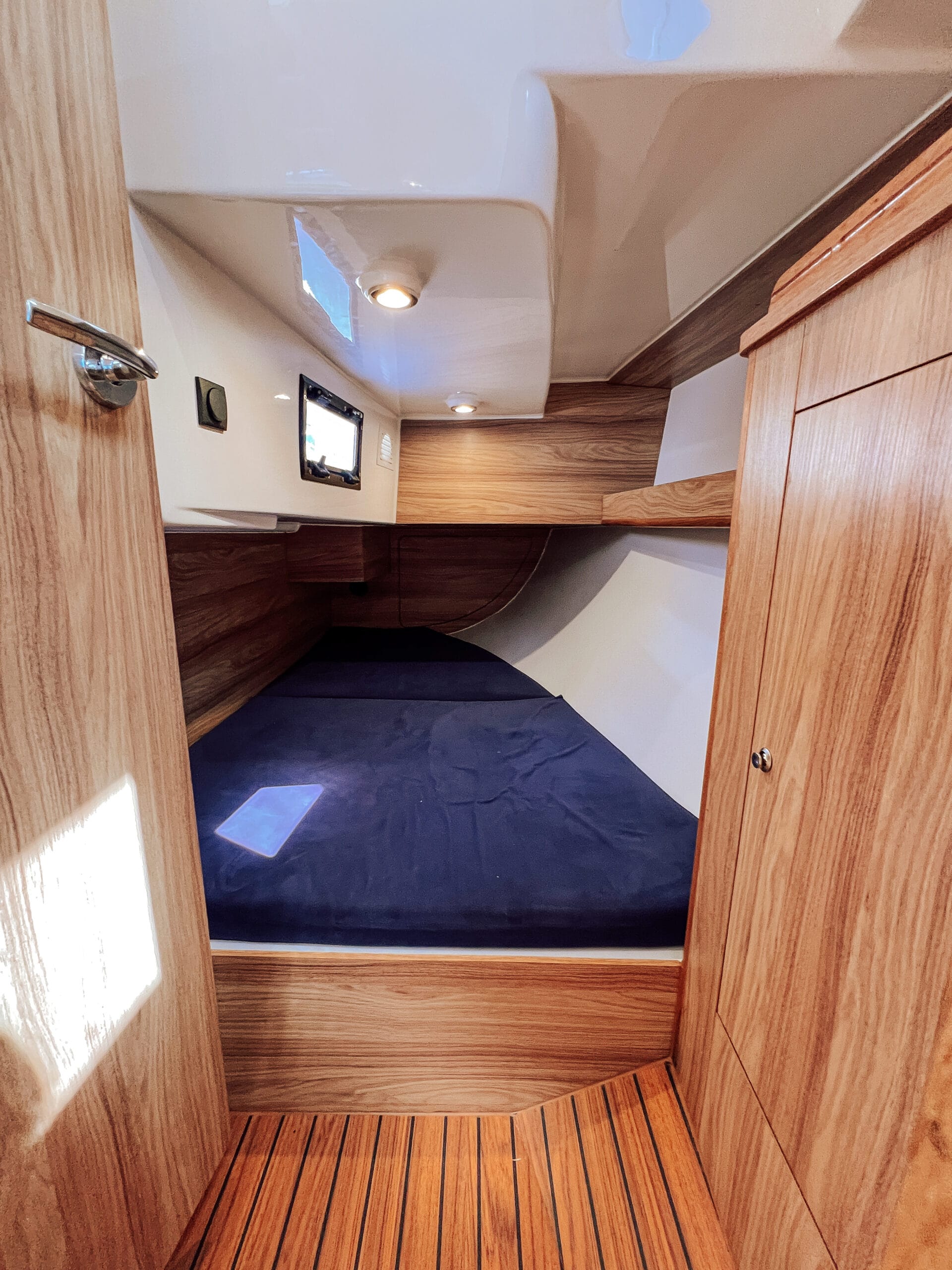 Posiada trzy wygodne dwuosobowe zamykane kabiny i przestronną mesę. Jest komfortowo wyposażony wewnątrz jak i w osprzęt zewnętrzny.